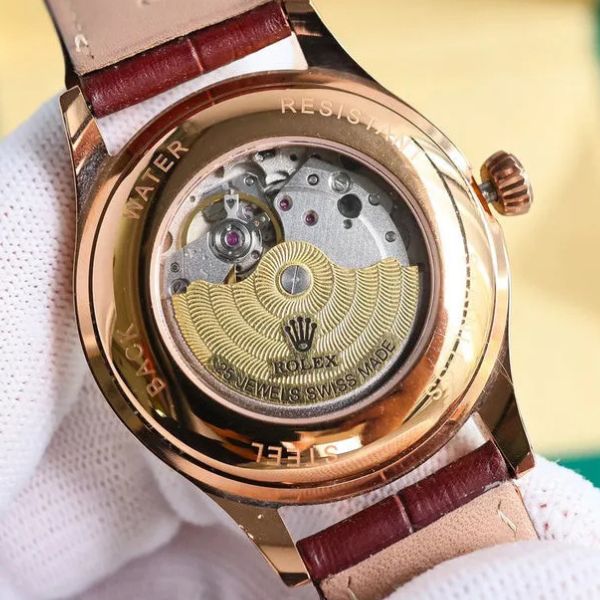 Com um refinado mostrador prateado e marcadores de horas em algarismos romanos, este relógio é uma homenagem à elegância clássica da relojoaria. A caixa em ouro rosa e a pulseira de couro polido criam uma estética distinta que combina tanto com o uso formal quanto com o cotidiano.