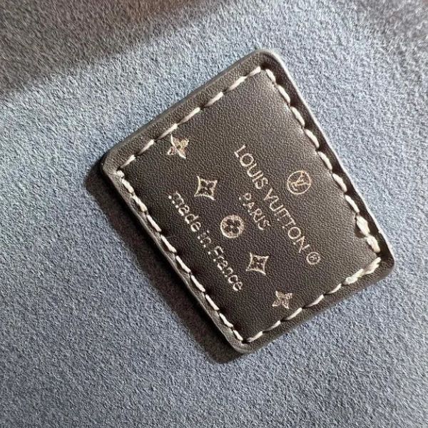 Material externo: lona jeans cinza texturizada com bordado de monograma tonal e acabamento em couro liso