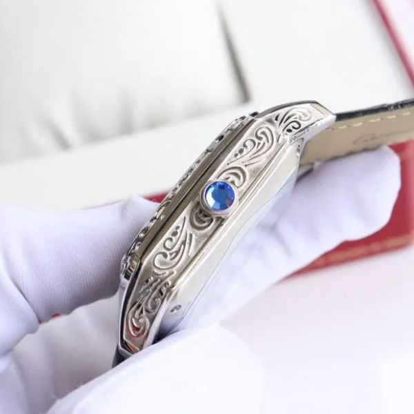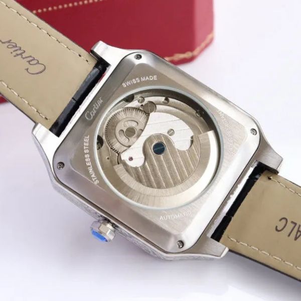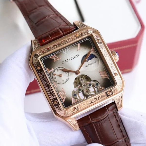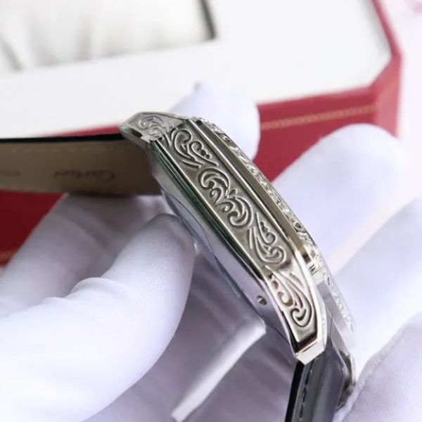 Uma homenagem marcante à relojoaria artesanal, este relógio combina tradição e personalidade com sofisticação moderna. A caixa quadrada gravada, aliada a um movimento mecânico visível, demonstra a harmonia entre estética arrojada e engenharia refinada.
