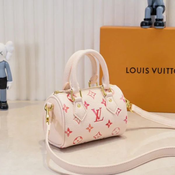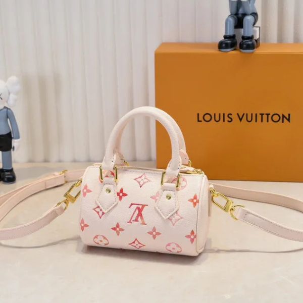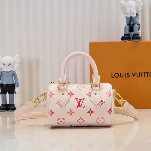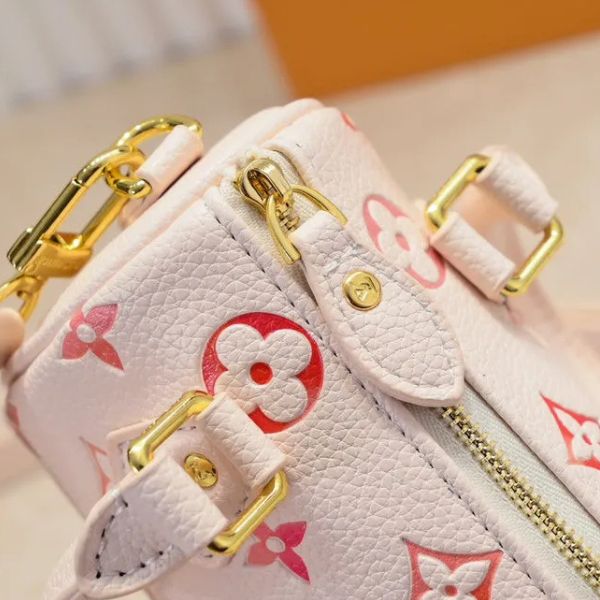 Uma celebração de charme e feminilidade atemporal, a Bolsa Rosé Bloom é uma homenagem refinada a um design clássico adorado. Seu tom pastel suave, combinado com os vibrantes detalhes do monograma, confere uma presença divertida e elegante. Confeccionada em couro texturizado com ferragens douradas, esta bolsa equilibra perfeitamente o estilo contemporâneo com a elegância tradicional.