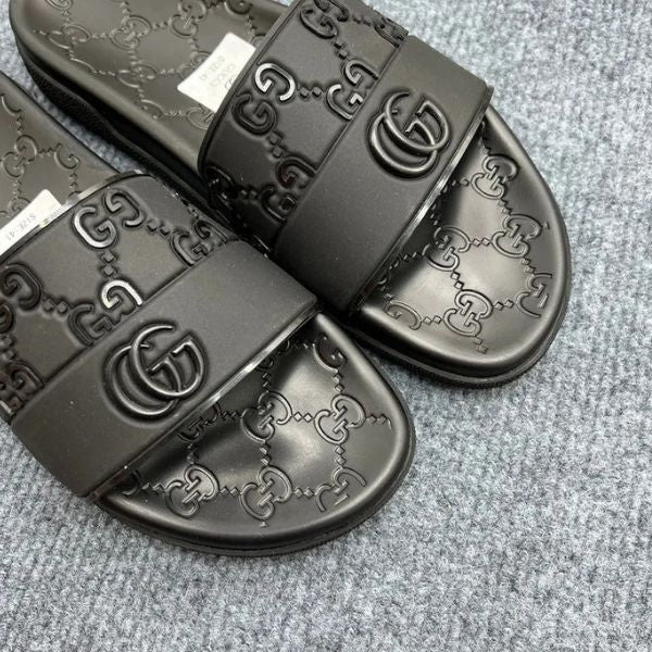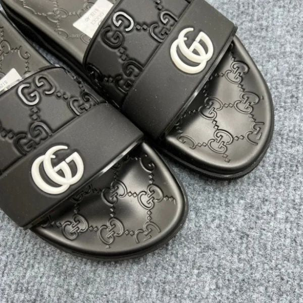 Chinelos elegantes com monograma em borracha preta