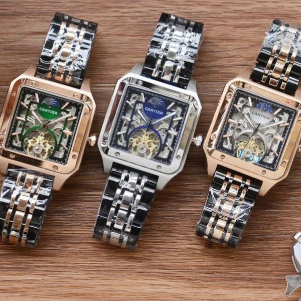 Relógio esqueleto de luxo masculino com movimento automático