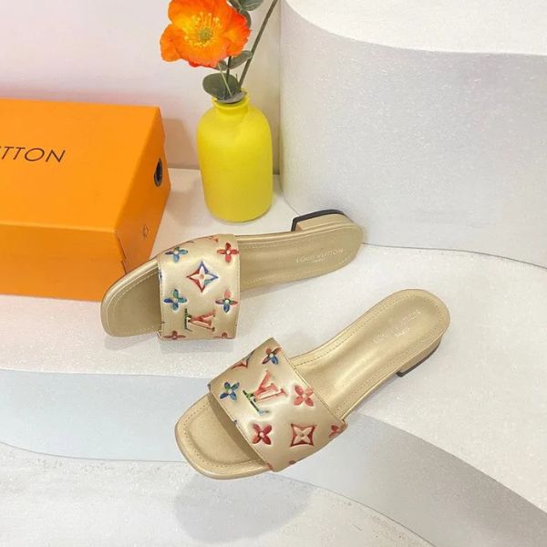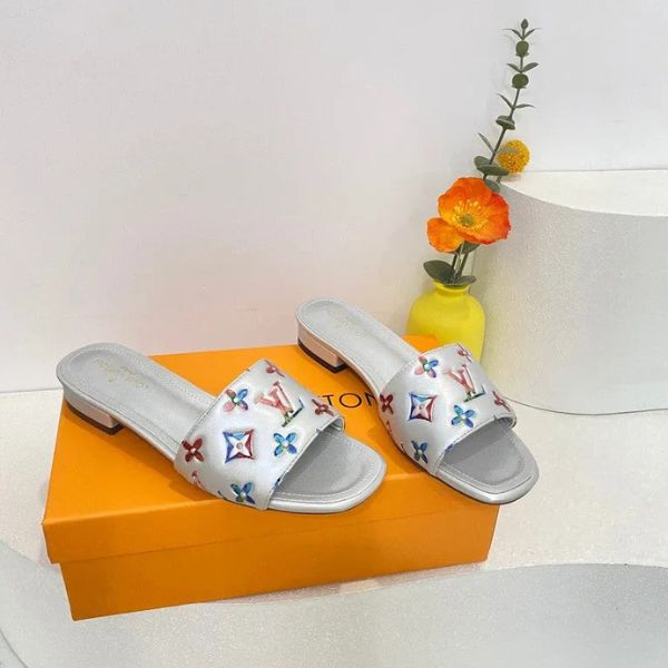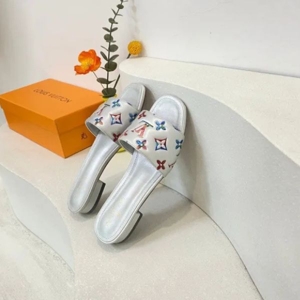 Esta refinada sandália slide homenageia uma silhueta icônica com um toque moderno. Confeccionada em couro sintético macio iridescente, ela equilibra o atemporal monograma em relevo com um brilho prateado contemporâneo que irradia elegância discreta.