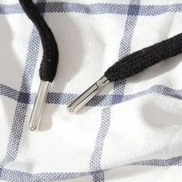 Detalhes: Punhos e cós elásticos, cordões com pontas de metal
