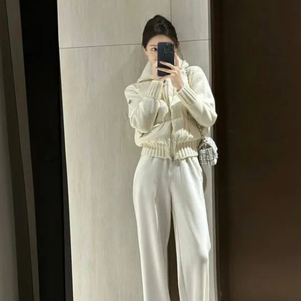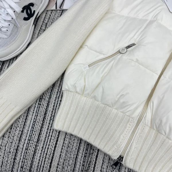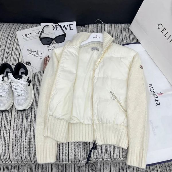 Uma peça contemporânea projetada para quem aprecia o luxo discreto. Esta jaqueta combina um corpo acolchoado refinado com mangas macias de lã, proporcionando calor e elegância em igual medida. Os punhos e a bainha canelados aumentam o conforto, enquanto os zíperes metálicos e a gola estruturada adicionam um acabamento elegante e refinado.